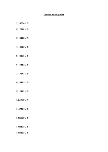 The number of problems vary per page. Division worksheet year 5 tes 213628. Worksheet for practising division.